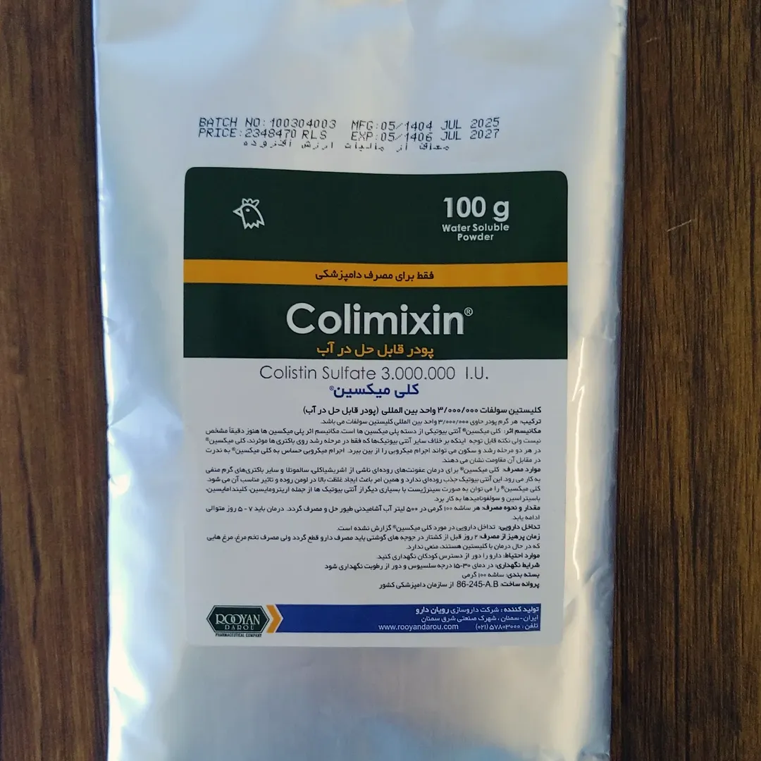 پودر کلی میکسین (کلستین سولفات ۱۰۰ گرمی) رویان دارو