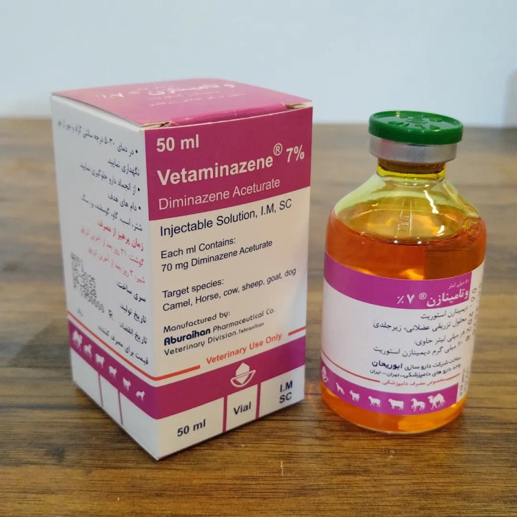 وتامینازن ۷% ابوریحان: راهنمای جامع مصرف و عوارض برای درمان بابزیا مقدمهای بر داروی وتامینازن در عرصه دامپزشکی و پرورش حیوانات، کنترل بیماریهای انگلی از اهمیت حیاتی برخوردار است. داروی وتامینازن ۷% (Vetaminazen ® ۷%) تولید شرکت داروسازی ابوریحان بهعنوان یکی از داروهای مؤثر در مقابله با انواع عفونتهای تکیاختهای و پیروپلاسما در دام بهشمار میرود. این دارو که نام ژنریک آن دیمینازن استوریت (Diminazene Aceturate) است، بهصورت محلول تزریقی تولید میشود و در درمان بیماریهای ناشی از تریپانوزوما و بابزیا در انواع دامها کاربرد دارد. این مقاله به بررسی جامع این دارو، مکانیسم عمل، نحوه مصرف، عوارض جانبی و سایر اطلاعات ضروری میپردازد. مشخصات کلی داروی وتامینازن وتامینازن ۷% یک داروی ضد انگلی قدرتمند است که در موارد زیر کاربرد دارد: انواع تریپانوزوما: تریپانوزوم کنگولنس، تریپانوزوم بروسهای، تریپانوزوم ویواکس پیروپلاسماها: انواع بابزیاها شامل بابزیا کانیس، بابزیا موتاسی، بابزیا بوویس، بابزیا بایژمینا، بابزیا کابالی، بابزیا گیبسونی، بابزیا اکوئی تیلریا آنولاتا این دارو در اسب، گاو، شتر، گوسفند، بز و سگ مؤثر است، هرچند تأثیر آن بر روی گونه تریپانوزوم بروسهای ضعیفتر از سایر گونهها بوده و در این موارد باید از مقادیر بیشتری از دارو استفاده گردد. مکانیسم عمل وتامینازن دیمینازن استوریت از مشتقات دیآمیدینها (ترکیبات آروماتیک) محسوب میشود. فعالیت ضد انگلی این ترکیبات ناشی از ایجاد تداخل در گلیکولیز هوازی و همچنین تأثیر در فرآیند ساخت DNA انگل است. از آنجایی که بابزیا و تریپانوزوما مانند بسیاری از انگلهای دیگر برای انجام گلیکولیز هوازی به گلوکز خون نیاز مبرم دارند، این دارو پس از تزریق با ایجاد ممانعت در استفاده انگل از گلوکز خون میزبان و ایجاد تغییر در ماهیت نوکلئوپروتئینهای انگل (دناتوره کردن)، اثر ضد بابزیایی و تریپانوزومی خود را نشان میدهد. نکته مهم در مورد این دارو این است که دیمینازن برای ماهها در کبد و کلیهها جمع شده و به سیستم گردش خون جنینی وارد میشود. همچنین مقادیر بسیار اندکی از دارو در سیستم اعصاب مرکزی تجمع یافته و برای ماهها در آنجا باقی میماند. موارد مصرف و دستورالعمل تجویز وتامینازن دوز درمانی بر اساس گونه دام دوز درمانی این دارو بسته به نوع انگل و مقاومت آن در گونههای مختلف از ۲ تا ۷ میلیگرم به ازای هر کیلوگرم وزن بدن دام زنده (۱ میلیلیتر به ازای ۲۰ کیلوگرم وزن بدن) به صورت تزریق عضلانی عمیق یا زیرجلدی استفاده میشود. جدول زیر دوز دقیق مصرفی برای گونههای مختلف را نشان میدهد: گونه دام دوز مصرفی (میلیگرم بر کیلوگرم) دوز مصرفی (میلیلیتر بر کیلوگرم) گاو، اسب و شتر ۳.۵ ۰.۰۵ (۱ میلیلیتر برای ۲۰ کیلوگرم) گوسفند و بز ۲-۵ ۰.۰۲۹-۰.۰۷۱ سگ ۳.۵ ۰.۰۵ در عفونتهای ناشی از تریپانوزوم بروسهای و همچنین گونههای دیگر که به دارو مقاومت داشته باشند، میتوان دارو را تا ۸ میلیگرم به ازای هر کیلوگرم وزن بدن دام افزایش داد. با این حال، توجه به این نکته ضروری است که دوز بالاتر از ۷ میلیگرم برای شتر سمی است. نکات مهم در مورد تجویز وتامینازن حداکثر مصرف دارو در دام بزرگ ۴ گرم میباشد. در هر محل تزریق بیش از ۵ میلیلیتر نباید تزریق شود و حجمهای بیشتر را باید در دو محل تزریق نمود. برای درمان کامل تریپانوزوم، یک تزریق کافی است. در درمان بابزیا جهت از بین بردن تمام انگلها، تزریق دوم بعد از ۲۴ ساعت تجویز میگردد. عوارض جانبی و نکات هشدار عوارض جانبی مصرف مقادیر درمانی مجاز هیچگونه عوارض جانبی نداشته و در محل تزریق در گاو، بز و گوسفند واکنش ناچیزی مشاهده میگردد. با این حال، در اسب در محل تزریق درد شدید ایجاد شده و توصیه میشود از تزریق بیش از ۵ میلیلیتر دارو در هر محل تزریق در اسب اجتناب گردد. در صورت تجویز دوز متعدد درمانی، عوارض زیر مشاهده شده است: در سگ: علائم شدید عصبی، خونریزی و ضایعات مشخص مغزی و تغییرات دژنراسیون چربی در کبد، کلیهها، 