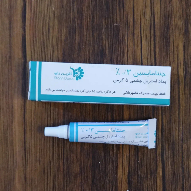 آنتی بیوتیک شکل دارویی: پماد استریل چشمی ترکیب دارو: هر گرم از پماد جنتامایسین چشمی حاوی ۳ میلیگرم جنتامایسین (سولفات) میباشد. شرح: جنتامایسین سولفات یک آنتی بیوتیک از گروه آمینوگلیکوزیدها میباشد که در مقابل طیف وسیعی از پاتوژنهای گرم منفی و گرم مثبت فعال است. مکانیسم اثر دارو: جنتامایسین سولفات آنتیبیوتیک آمینوگلیکوزید وسیع الطیفی است که با مهار سنتز پروتئین باکتری اثر باکتریوسیدی را اعمال کرده و بر عفونت های باکتریایی چشمی و بافتهای اطراف چشم بسیار مؤثر میباشد. موارد مصرف دارو: جهت درمان عفونت های باکتریایی حساس به جنتامایسین توصیه میگردد. روش و میزان مصرف: پماد روزانه ۲ تا ۴ بار داخل کیسه ملتحمه به آرامی تخلیه شود.