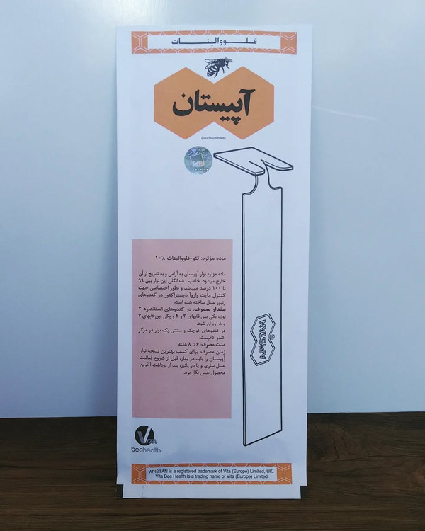 خاصیت ضد انگلی این نوار بین ۱۰۰ درصد میباشد و بطور اختصاصی جهت کنترل مایت واروآ دیستراکتور در کندوهای زنبور عسل ساخته شده است. مفدار مصرف: در کندوهای استاندارد ۲ نوار یکی بین قابهای ۳ و ۴ و یکی بین قابهای ۷ و ۸ آویزان شود. در کندو های کوچک و سنتی یک نوار در مرکز کندو کافیست. مدت مصرف: ۶ تا ۸ هفته زمان مصرف: برای کسب بهترین نتیجه نوار آپیستان را باید در بهار، قبل از شروع فعالیت عسل سازی و یا در پاییز، بعد از برداشت آخرین محصول عسل بکار برد.